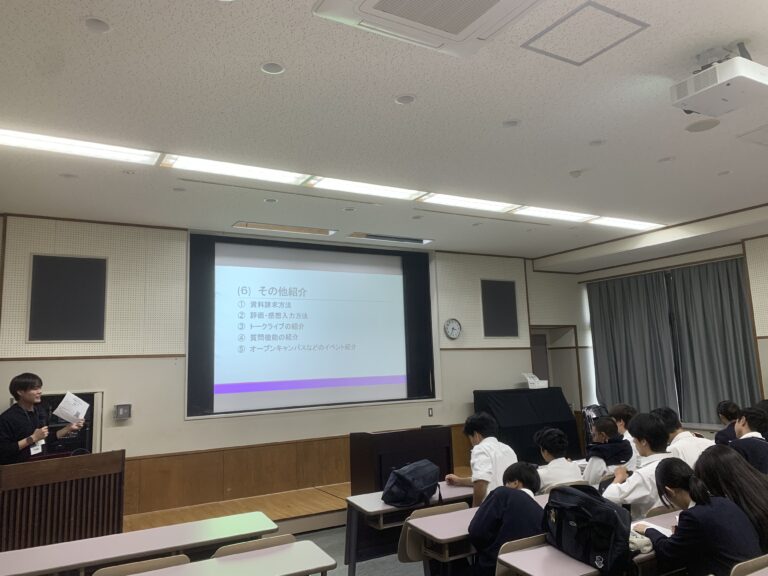 学生目線ならではの話題を、生き生きとお話ししてくれました。年齢の近い先輩から話を聞くことができ、大学に通う自分自身をよりリアルに実感できたようです。