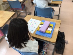 今度は子どもたちがお店屋さんを開きます。「鉛筆を買いたいんだけど、誰のお店で買おうかな。」と言いながら 先生が“How much is the pencil?” と子どもに尋ねると、「僕のは100円!」「私のお店は85円だよ!」「うちは今キャンペーン中だよ!」と値段を考えたり特典をつけたりと大忙し。なんとか買ってもらえるように頭を働かせます。