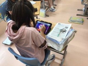 この日はオリジナルの生き物の絵を描いて,その説明を書くという活動を行いました。子どもたちはクリエイティブにライティング活動に取り組んでいる様子でした。