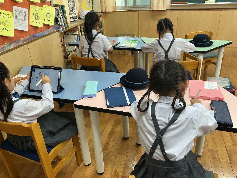 Eラボでは、特進クラスの児童が、アトキン先生やオコリ先生のサポートを受けながら英語の学習を進めます。