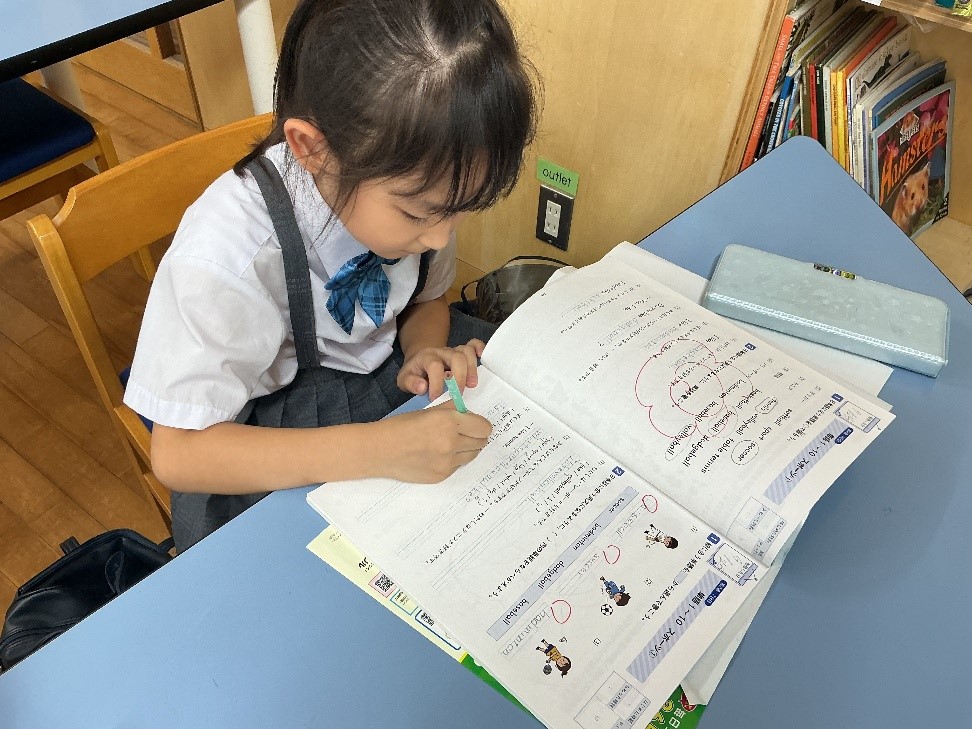 高学年になると、英検対策に励む児童もいます。 その週の宿題を持ってきて取り組む姿も。