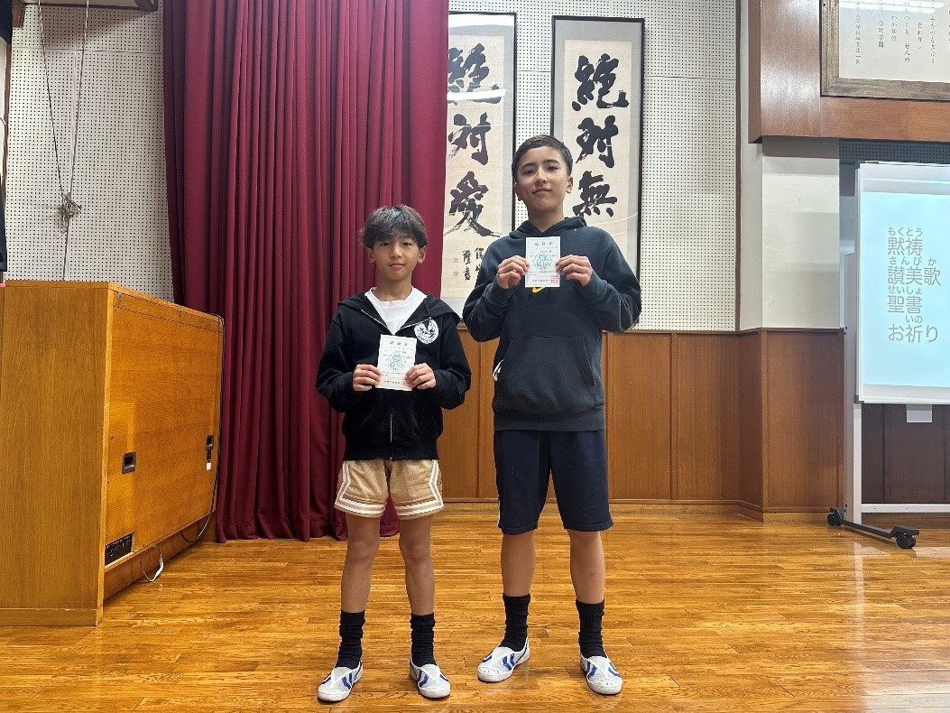 後日、表彰式を行いました。上位3位以内に入った子どもは校長先生から記録証をもらい嬉しそうにしていました。来年もみんなで記録にチャレンジしたいと思います。