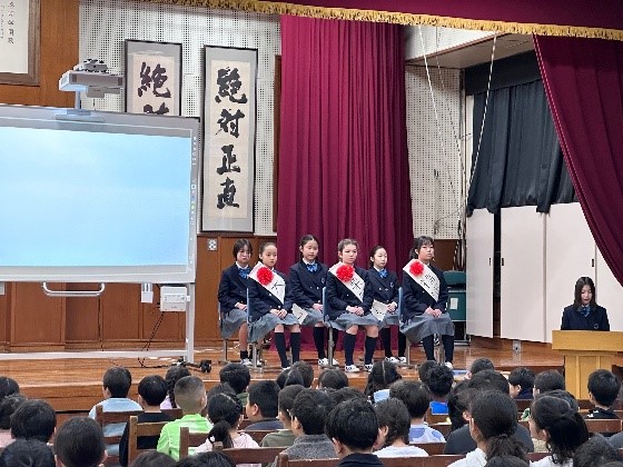 1月23日(金)の1時間目に、2026年度の新児童会役員5年生立ち会い演説会が行われました。