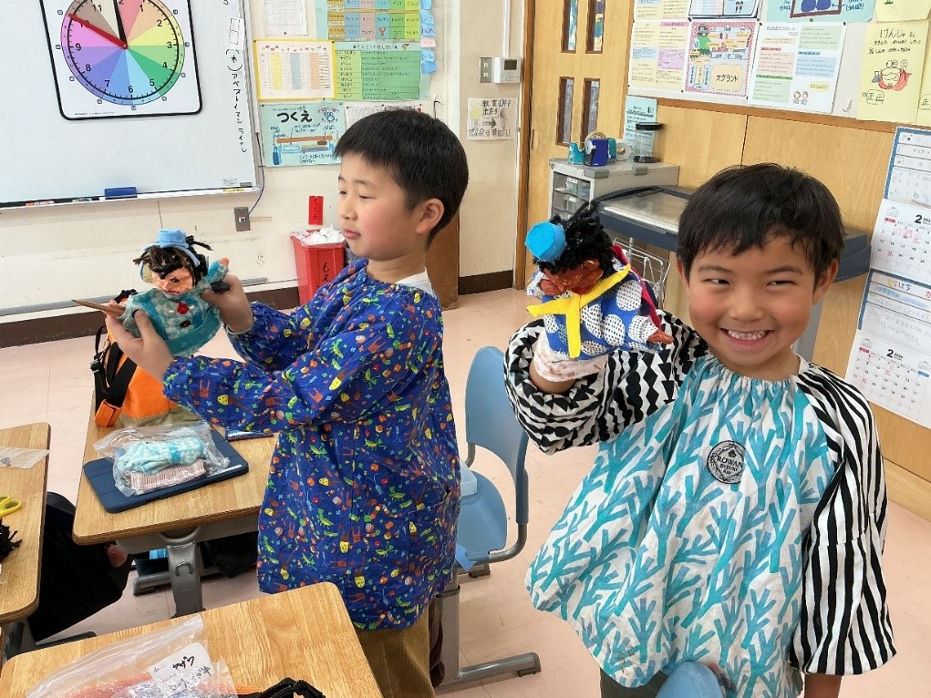 1年生は、昨年末からゆびにんぎょうづくりに丁寧に取り組んできました。3学期に入って、やっと完成しました!帽子をかぶせたり、ボタンを付けたり、それぞれの子が思い思いにオシャレを楽しんでいます。